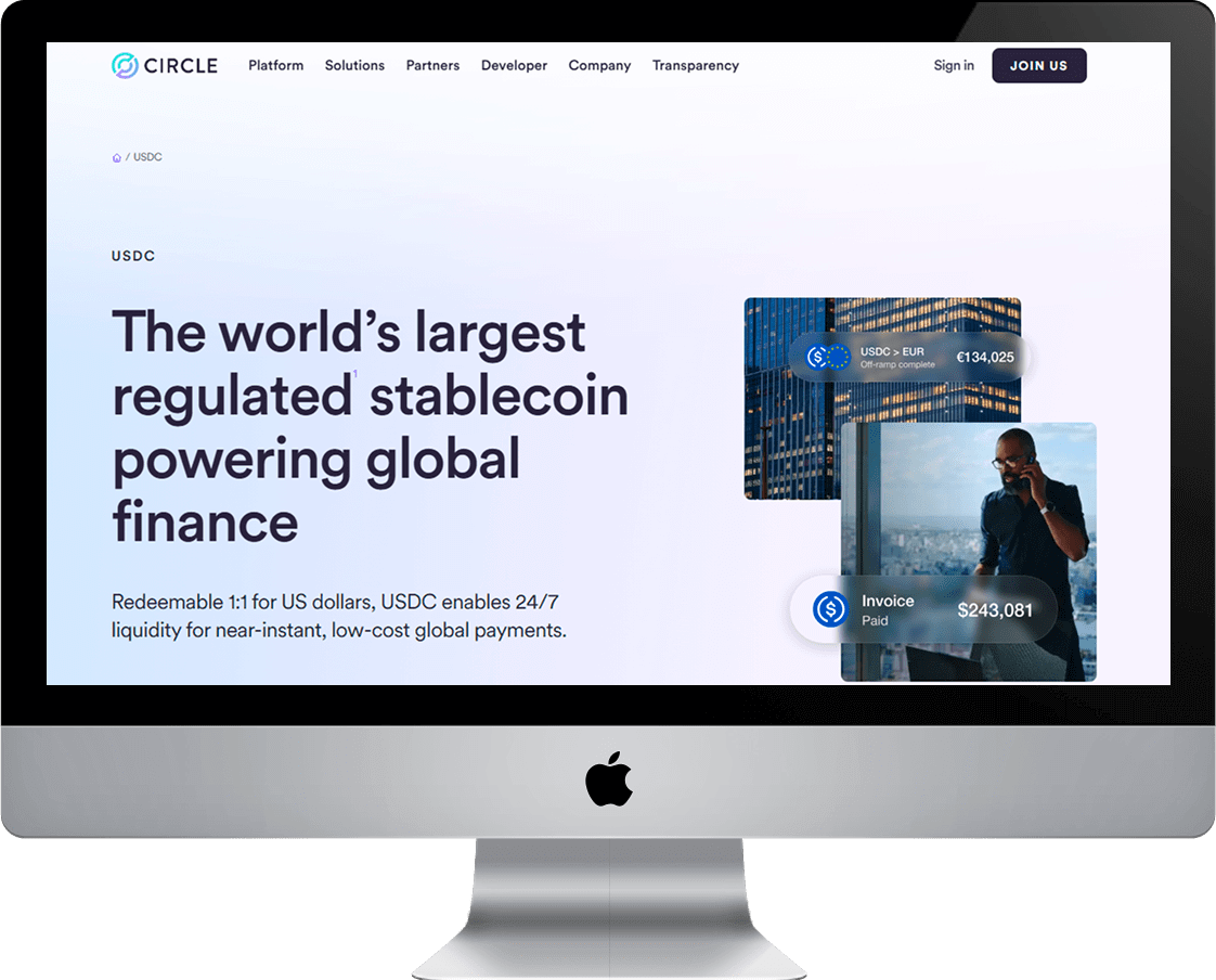 USD Coin (USDC) ist ein Stablecoin mit USD-Bezug für Payments, On-Chain-Settlement und Treasury. Ideal für Unternehmen, die Krypto-Transaktionen planbar und preisstabil abwickeln möchten.